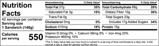 Refrigerated: Remove frozen individual sandwiches from freezer and place directly into the refrigeration unit. Product can be held refrigerated for up to 24 hours; holding beyond 24 hours will quickly dry out the bread. For best consumer experience, product should be held at room temperature for 30-60 minutes prior to consumption. Dispose of any unused product after 24 hours.